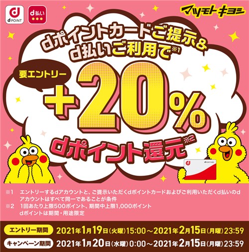 【dポイントクラブ】マツモトキヨシ +20%dポイント還元 – キャンペーン