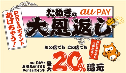 今月メインになりそうなのは、以下のau PAYの「たぬきの大恩返し」キャンペーンです。